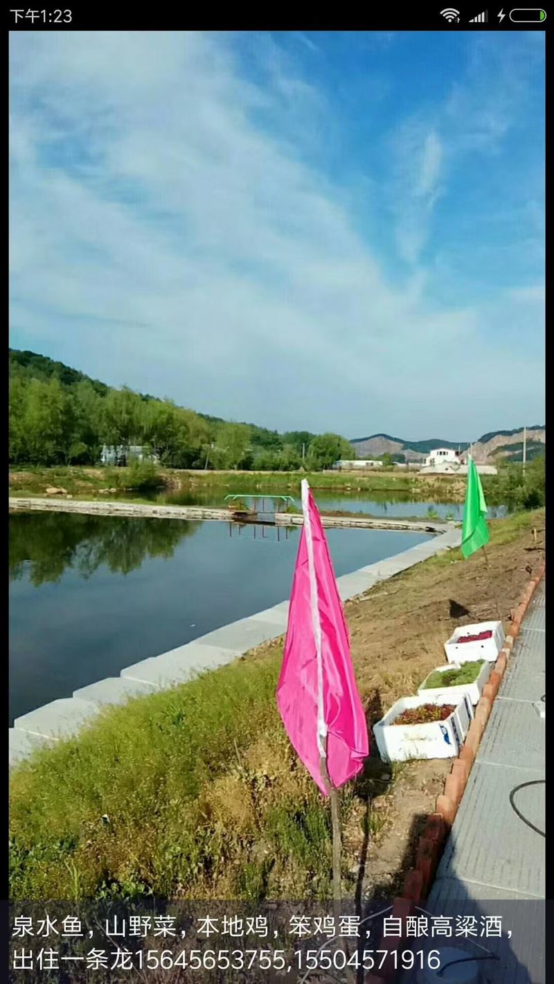 山泉水,鱼塘砂石底部有泉眼,深度3.4米,可越冬周围有住房,,后有小河流向红星水库,常年不冻,有采摘基地,靠路旁视野宽阔,前后都有山,山货随便采摘,刺五加,柳蒿,山茄子等,秋蘑菇,各种山货,养老开发的好地方,因老人年纪大了无人照料,有意者可拨打15645653755